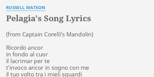 Pelagia S Song Lyrics By Russell Watson Ricordo Ancor In Fondo